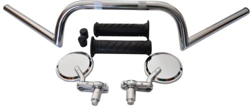 The listing is for three items, one set of 7/8" chrome clubman handlebar, one pair of chrome bar end mirrors and one set of black open ended 7/8" grips